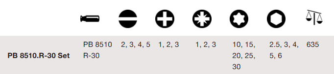 PB8510R30SET ชุดไขควงด้ามฟรี (สั้น) พร้อมดอก บรรจุกล่อง PB SWISS TOOLS